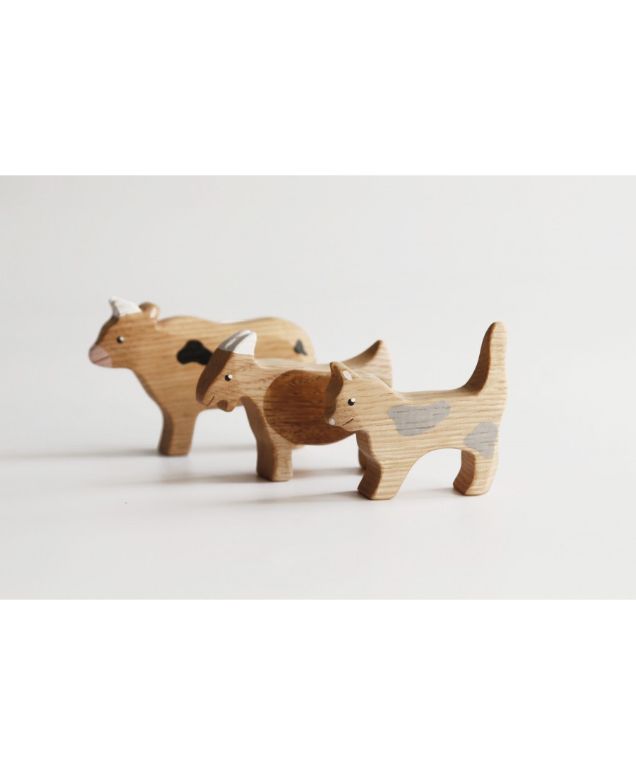 Zabawki pokryte są kolorowymi, bezpiecznymi woskami z certyfikatem EN-71 i EN-73, dzięki czemu dzieci mogą je gryźć i lizać. Bawiąc się drewnianymi zabawkami, dziecko może dotykać i dotykać naturalnych materiałów, a także doskonalić swoje zdolności dotykowe i motoryczne.