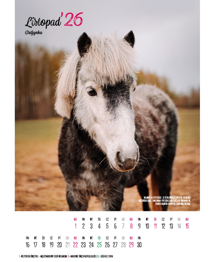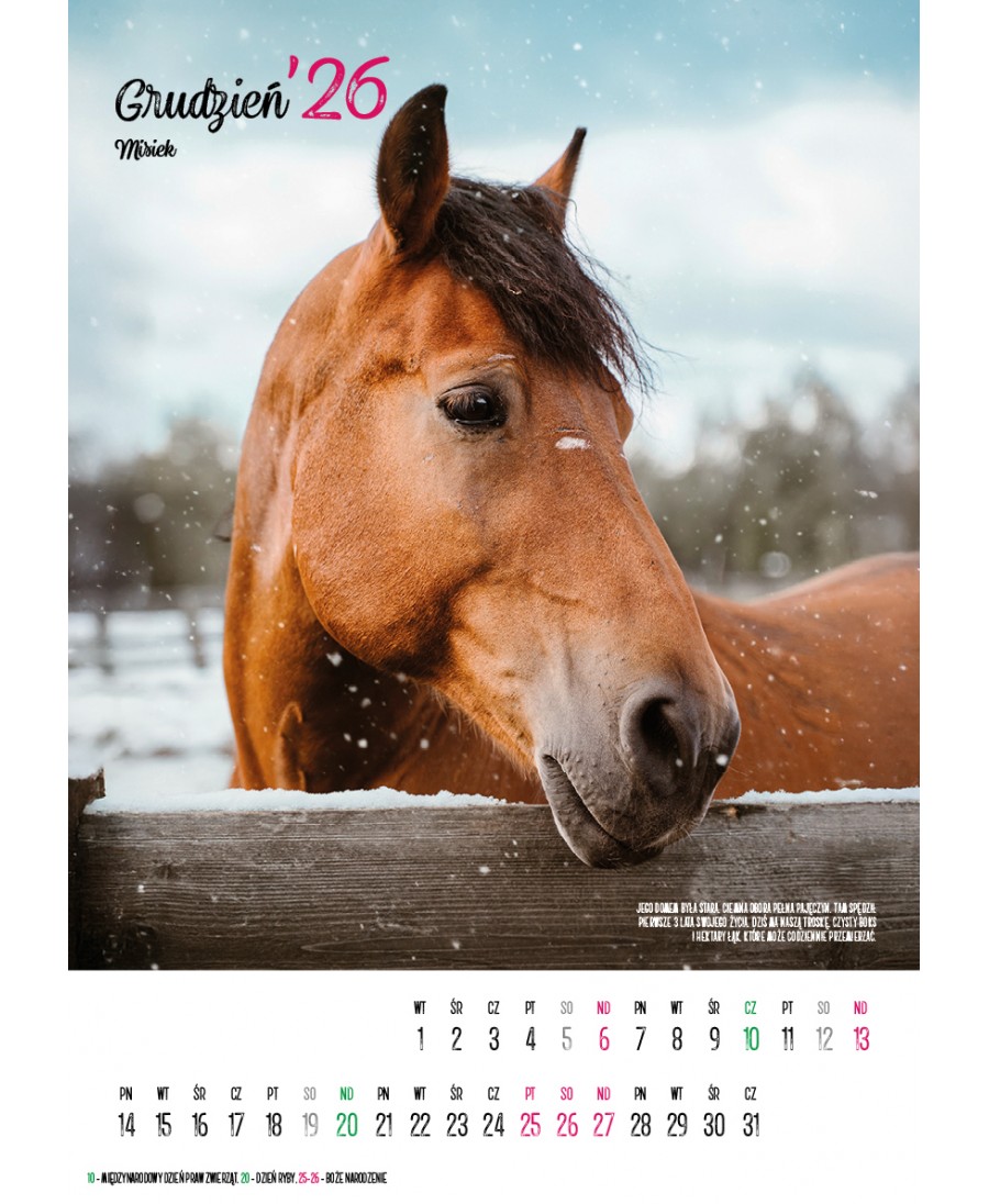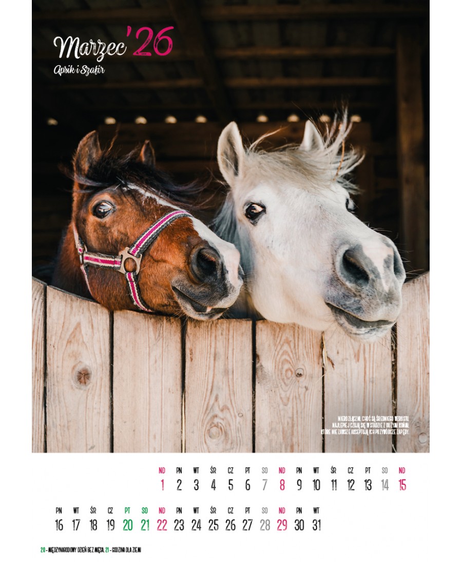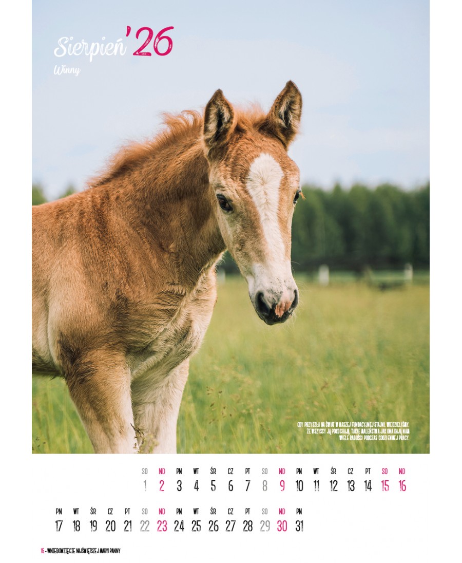 Bardzo ładnie wydany charytatywny kalendarz z przepięknymi zdjęciami naszych podopiecznych. Kalendarz w formacie A3, oprawiony w spiralę, co ułatwia przerzucanie kolejnych kart.